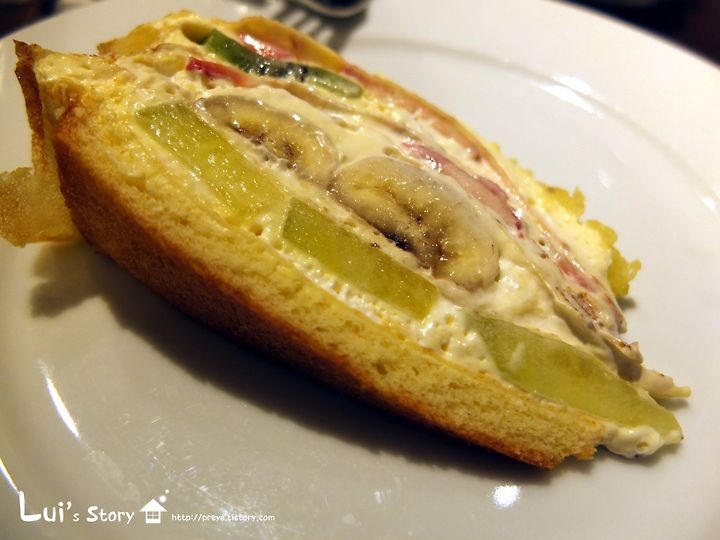 딸기, 바나나, 파인애플 등의 과일이 층층이 알차게 들어가 있어요.