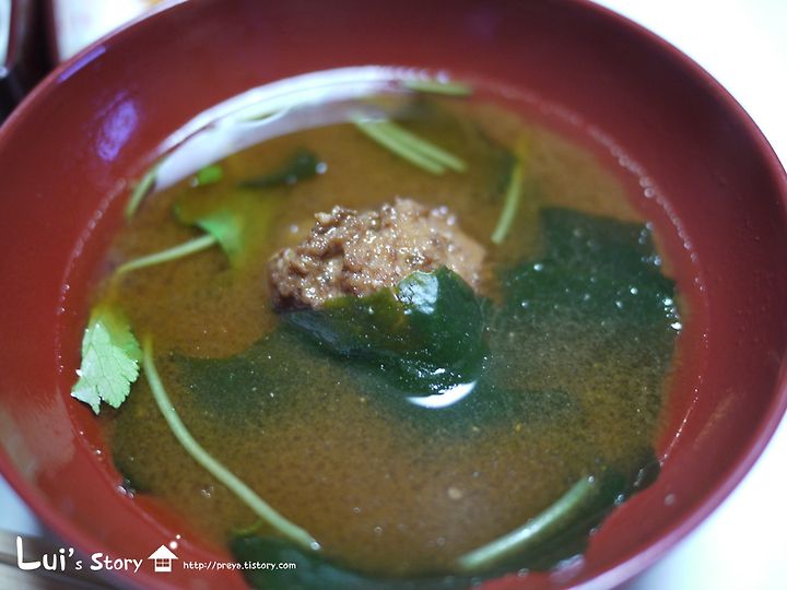 뭔가 조금 짰던 고기가 든 미소국