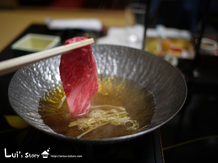 아까 그 화로에 간장을 기본으로 한 국물을 올려줍니다.