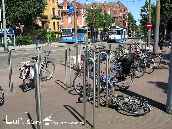 차보다 자전거가 더 많아보이는 암스텔담의 거리를 걷습니다.