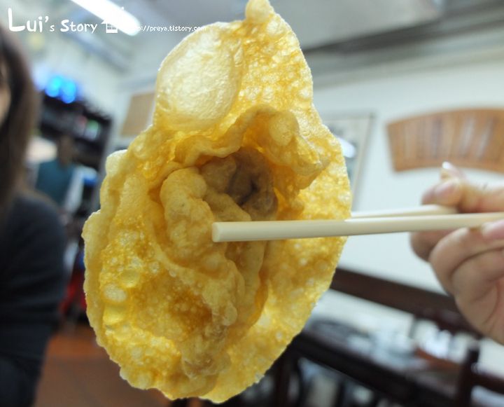 완탕면에 들어가는 그 완탕을 그대로 튀긴 것 같았습니다.
