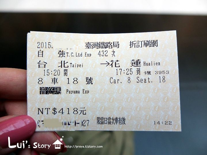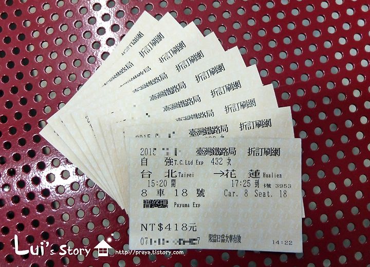 타이베이에서 화련으로 가는 열차는 미리 예매를 해두었습니다.