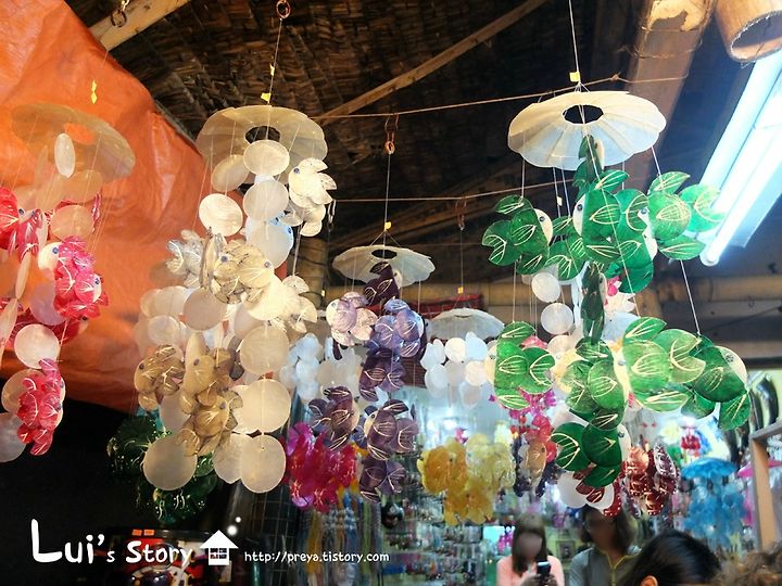 염색한 조개 껍질로 만든 것 같은 화려한 장식품을 팔고 있는 가게도 있었습니다.