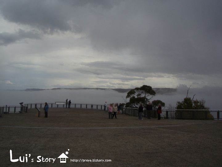 안개가 너무 심해서 세자매 봉우리는 커녕 한치 앞도 안보이게 되어버렸습니다.