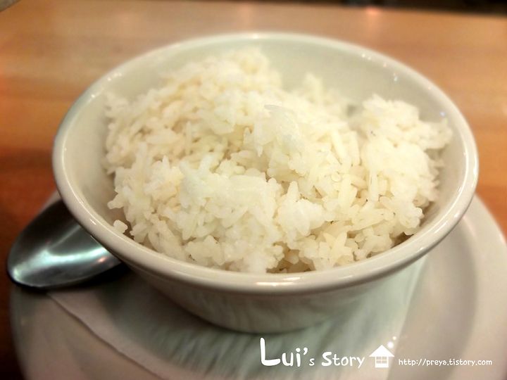 빵이 제일 큰 그릇에 담겨져서 나왔습니다. 하얀 쌀밥도 함께.