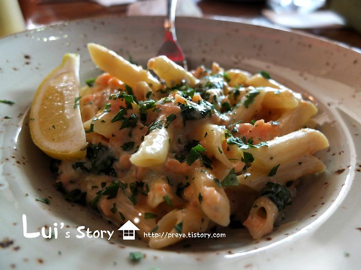 연어 펜네 파스타입니다.
