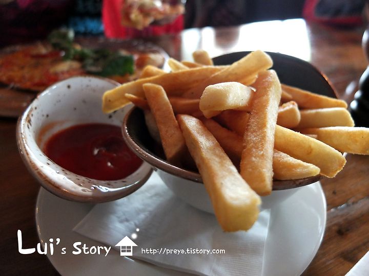 5명이지만 음식은 4가지만 시키고, 감자 튀김을 추가하였습니다.
