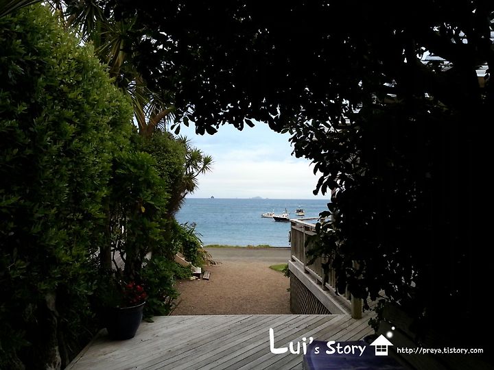 바로 앞이 바다이긴 한데, 정원에 수풀이 무성해서 잘 보이지는 않았습니다.