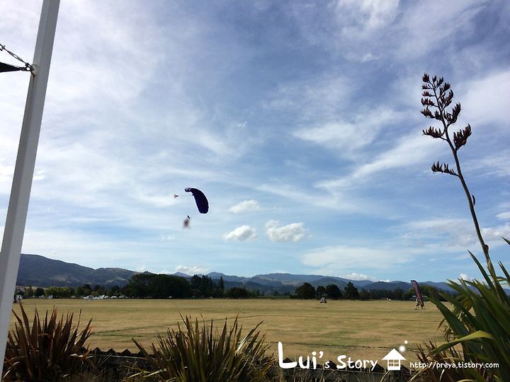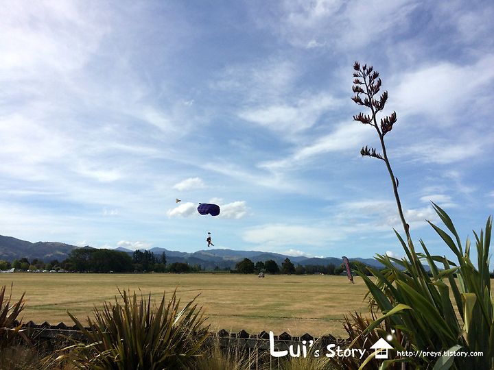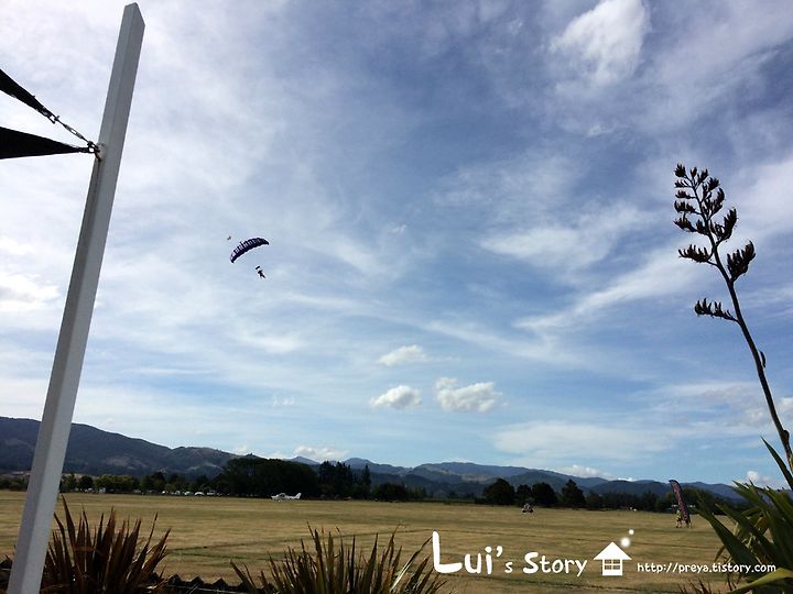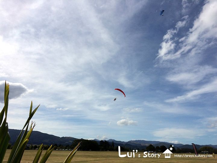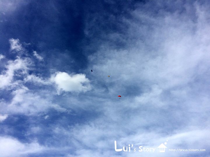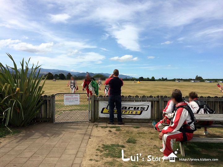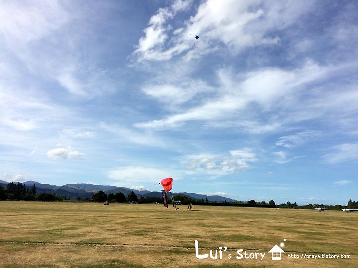 아무튼 이 시점에는 강사가 낙하산을 조정해서 방향을 튼다든지, 회전을 한다든지 ...