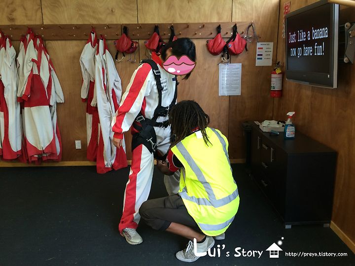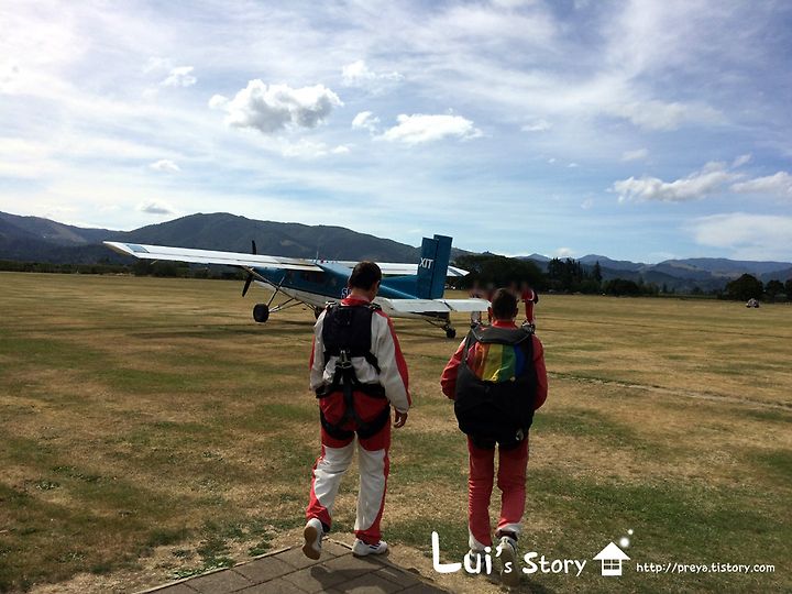 근데 스카이 다이빙은 등 뒤에 붙어 있는 강사가 뛰면 내 의지와는 관계 없이 뛰어 내리게 됩니다.