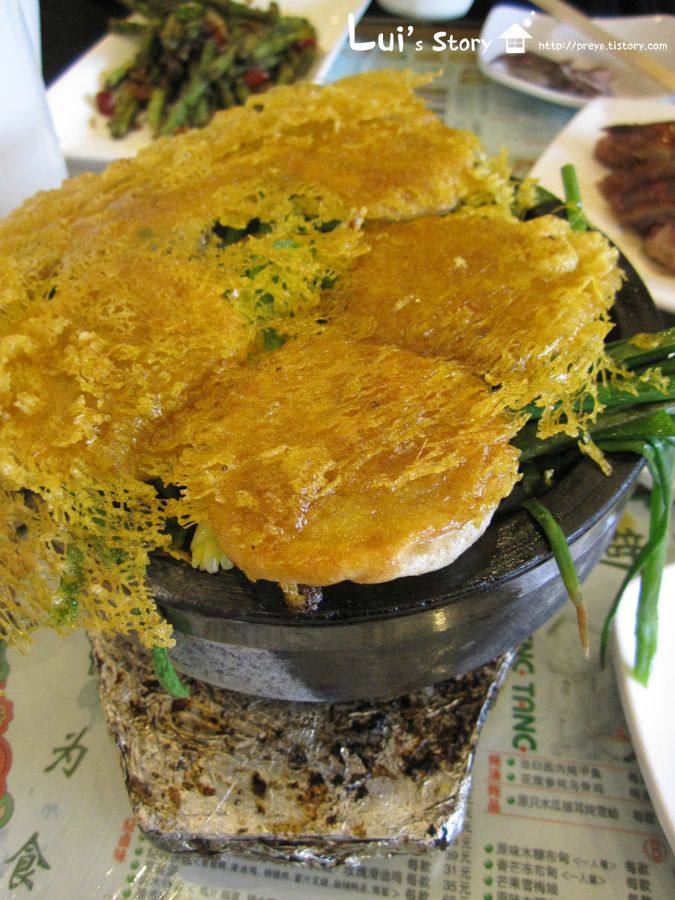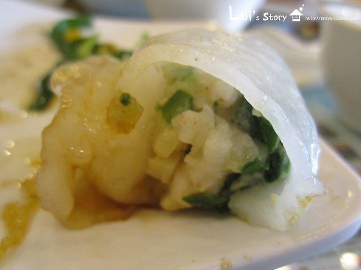 위에는 전분을 눌려 구운 딤섬이 올라가 있고,